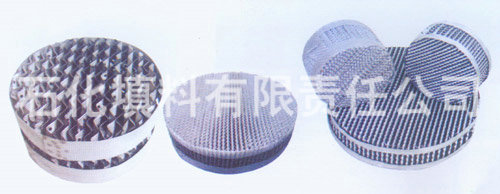 【 產品概述 】 金屬填料材質包括碳鋼及不銹鋼等。由于其加工壁薄、空隙率大、通量大、阻力小,又耐熱、耐腐蝕,分離效果好,特別適用于真空精餾塔,處理熱敏性、易分散、易聚合、易結碳手的料。 我公司生產的金屬規整填料包括孔板波紋填料、板網波紋填料、刺孔板波紋填料、絲網波紋填料及環形波紋填料。